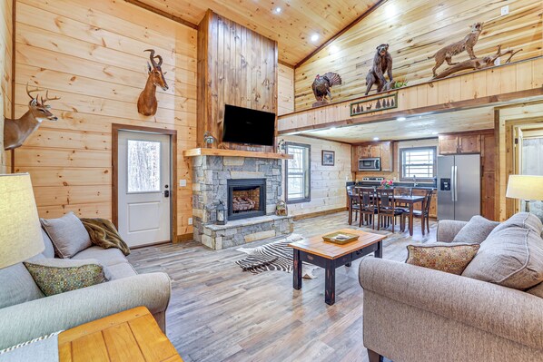 Forest City accommodation with fireplace and kitchen