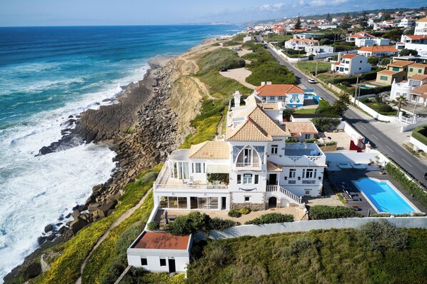 I rarely take the time to write reviews, but this incredible place truly deserves the spotlight. This stunning, spacious, and romantic home is perched on the cliffs of Portugal’s west coast, just 15 minutes from Sintra. From the moment we arrived, we were warmly welcomed by Alfie and Miguel, who greeted us with the kind of genuine hospitality that made us feel like long-lost family. Alfie prepared an incredible breakfast each morning (included in the stay), and the entire experience felt like a luxurious, five-star retreat with a personal touch. The interior of the home is a thoughtful blend of eclectic Mediterranean charm, mid-century character, and boho elegance. Every corner reflects intentional design—from the curved fireplace and white stucco walls to the marble railings and abundant natural light streaming through expansive windows. The constant sound of waves crashing against the cliffs below added to the dream-like ambiance. As we were traveling as a family, we stayed in the cottage on the property, which offered a lovely private retreat with two bedrooms (one queen and two twins), a cozy living room with a large TV, and a well-equipped kitchenette. The dining area was tastefully decorated with woven rugs, soft fabric chairs, and subtle green and gold accents. Sitting there each morning, enjoying a beautifully prepared breakfast while gazing out at the ocean below, was truly unforgettable.